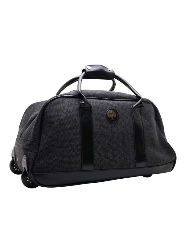 A Grant's branded weekend travel bag, with wheels and an extendable handle.