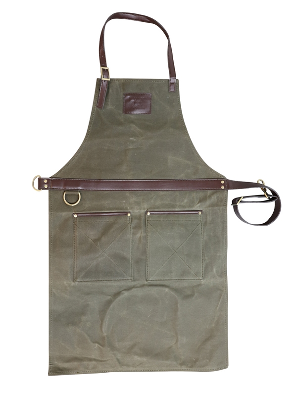 A Tullamore D.E.W. bartender's apron, made from 100% waxed cotton with leather trim and straps.