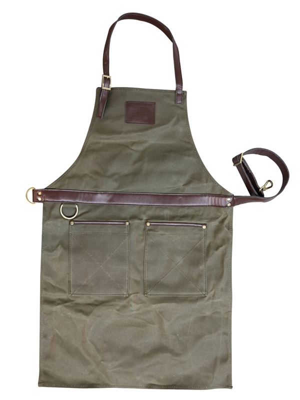 A Tullamore D.E.W. bartender's apron, made from 100% waxed cotton with leather trim and straps.