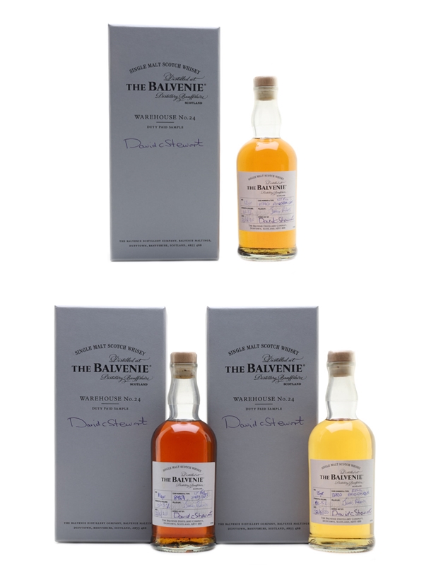 This lot contains three 20cl sample bottles of The Balvenie Single Malt Scotch Whisky. These were matured in single casks drawn from Warehouse 24, and were hand selected and signed by The Balvenie Malt Master, David C Stewart MBE. These were bottled on 22 June 2020: