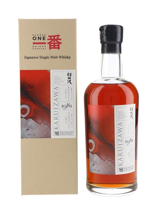 A bottle of Karuizawa 33 Year Old Japanese Single Malt Whisky. This was distilled in March 1981, matured in a single ex-sherry cask and bottled in July 2014 for French whisky merchant La Maison du Whisky.