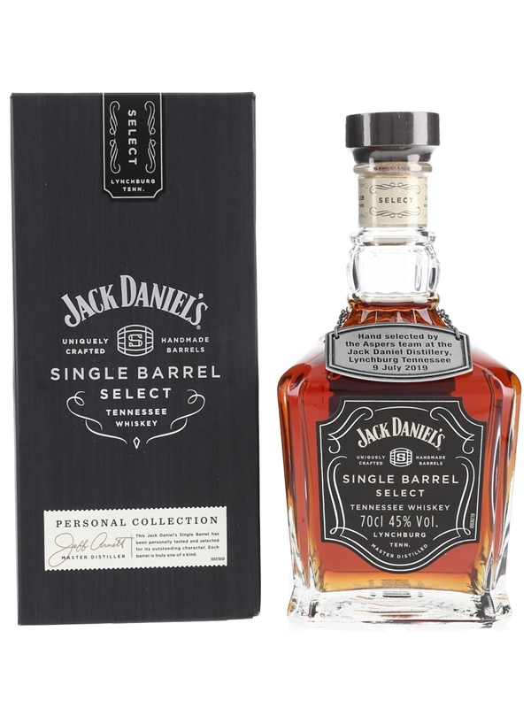 A bottle of Jack Daniel's Single Barrel Select Tennessee Whiskey. This was hand selected by the Aspers team on 9 July 2019 and bottled on 16 July 2019.