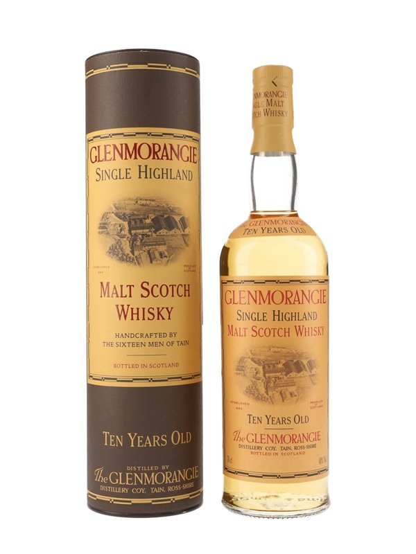 A bottle of Glenmorangie 10 Year Old Single Highland Malt Scotch Whisky, bottled in 1993 to celebrate the 150th anniversary of Glenmorangie.