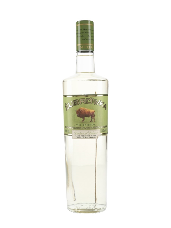 A bottle of Żubrówka Vodka, The Original Bison Grass Flavoured Vodka from Poland.