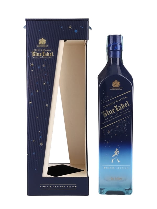 A bottle of Johnnie Walker Blue Label Winter Edition Blended Scotch Whisky. This was released for Christmas 2016.