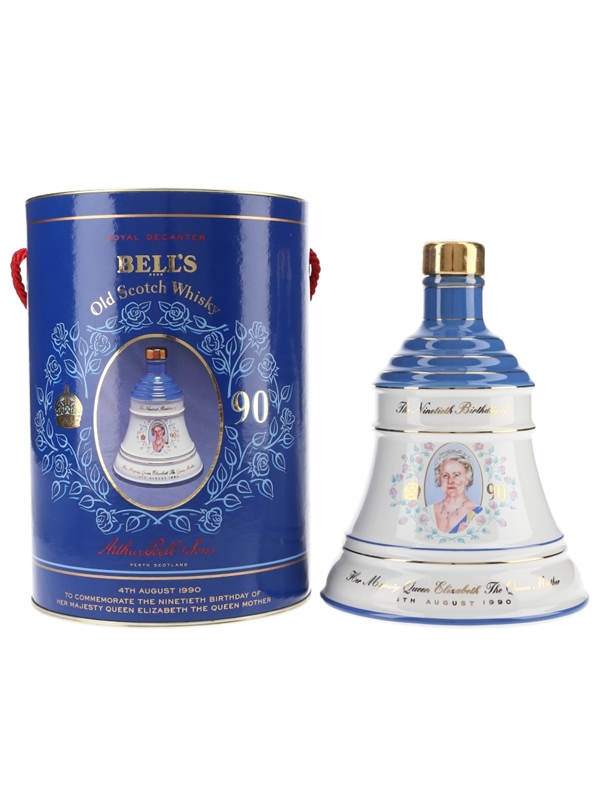 A ceramic decanter of Bell's Old Scotch Whisky, released to celebrate the 90th birthday of the Queen Mother in 1990.