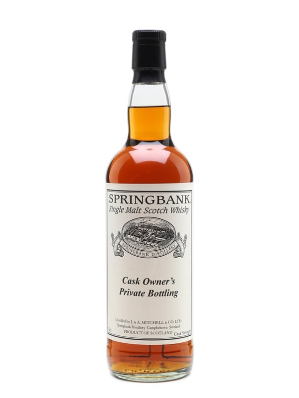 A bottle of Springbank from a private owner's cask. This was distilled in 1993, matured in a fresh sherry cask, and bottled at cask strength in 2014.