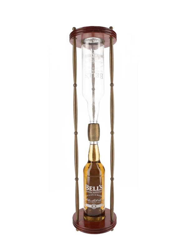 A fully functional Bell's Extra Special Hourglass, which measures approximately 63.5cm tall. It takes one hour for the liquid to pass from one bottle to the other.