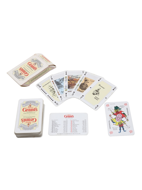 A pack of William Grant's Family Reserve Finest Scotch Whisky playing cards, presented in the original box. This is a special edition, each card illustrates a different original William Grant's advertisement dating from 1928 to 1940.