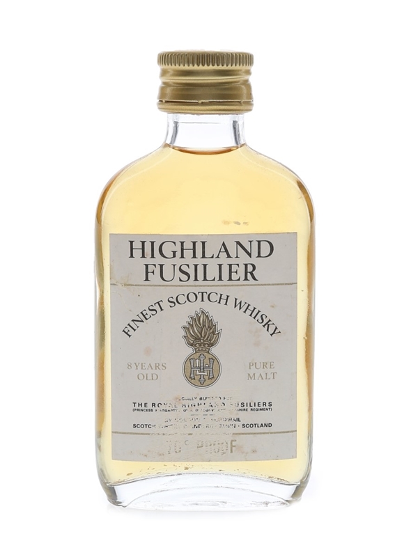 A miniature bottle of Highland Fusilier 8 Year Old Pure Malt Finest Scotch Whisky. This was specially produced for The Royal Highland Fusiliers by Gordon & MacPhail, we estimate in the 1970s.