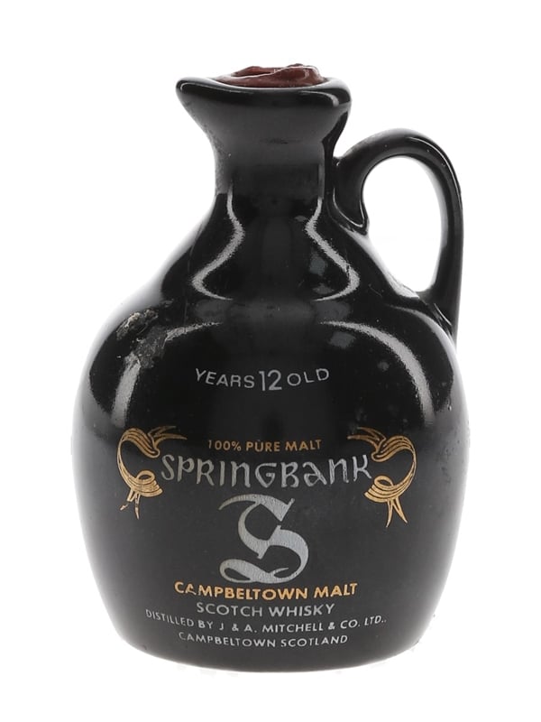A miniature ceramic jug of Springbank 12 Year Old 100% Pure Malt Campbeltown Scotch Whisky. We estimate this was bottled in the 1980s.
