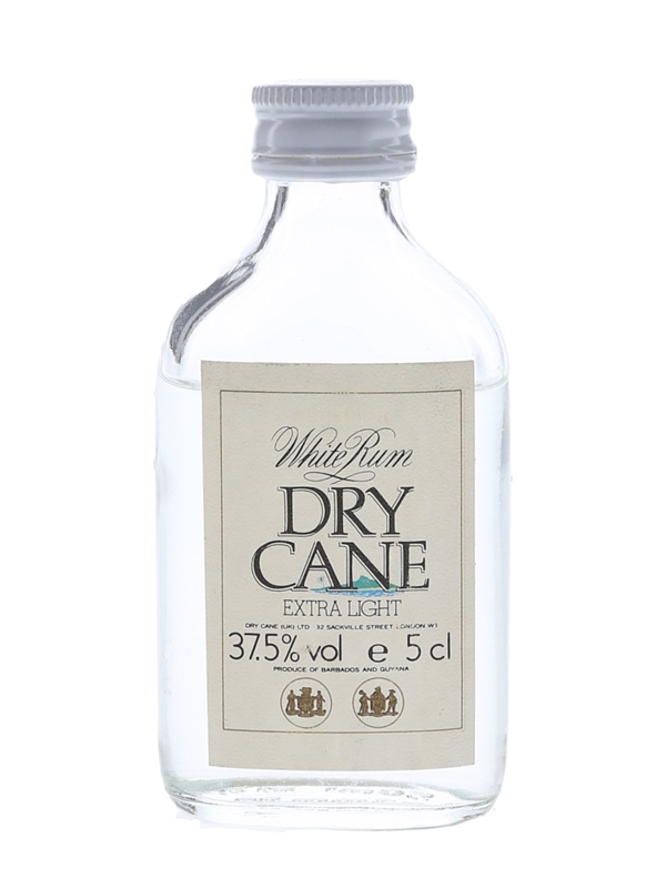 A miniature bottle of Dry Cane Extra Light Superior Rum, produced in Barbados and Guyana. We estimate this was bottled in the 1980s.