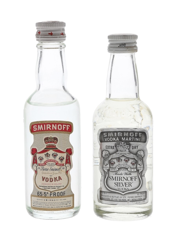 Smirnoff Red & Silver Label Bottled 1970s-1980s - International Distillers & Vintners 2 x 5cl