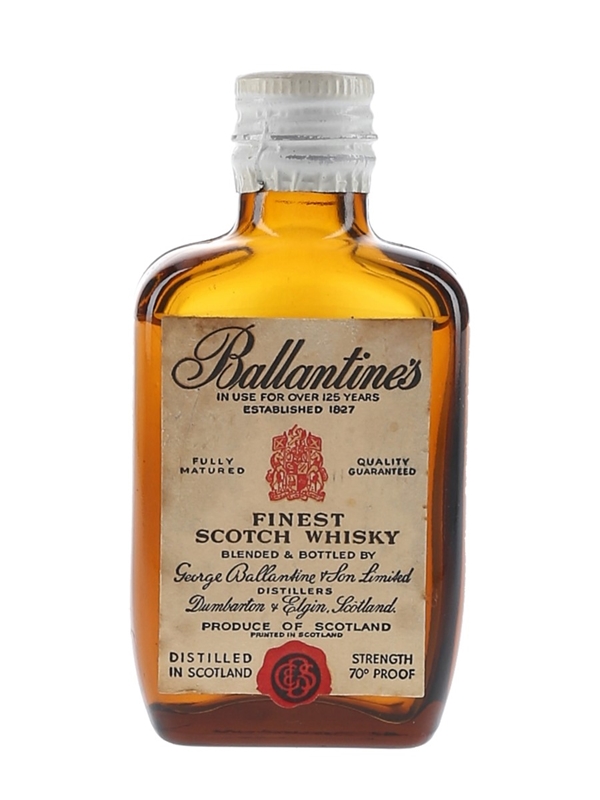 A miniature bottle of Ballantine's Finest Scotch whisky, produced by George Ballantine & Son Limited. We estimate this was bottled in the 1960s.