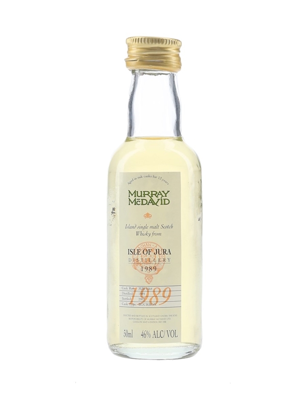 A miniature bottle of Isle of Jura 13 Year Old Island Single Malt Scotch Whisky. This was distilled in 1989, matured in a single bourbon barrel and bottled by Murray McDavid in 2002.