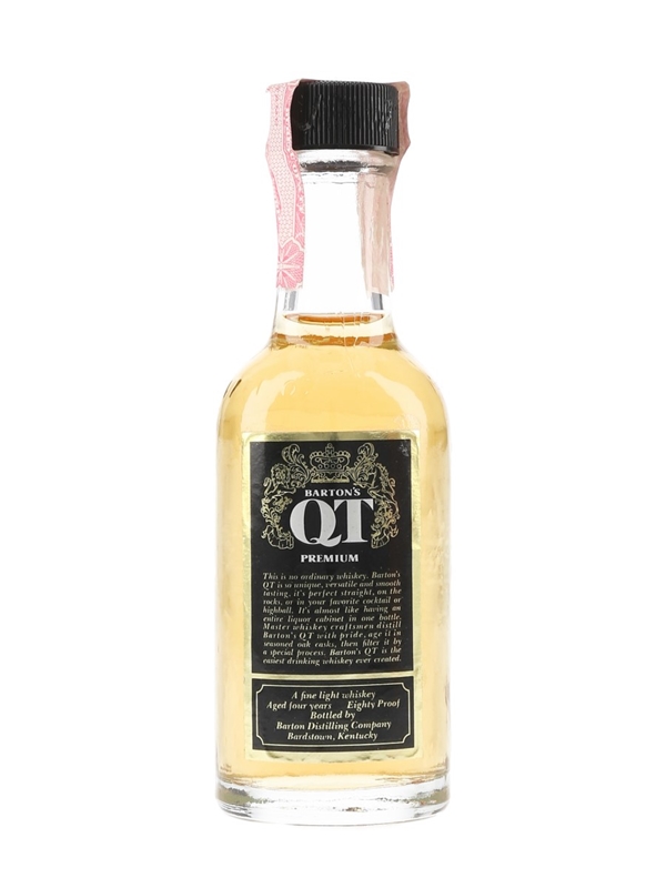 A miniature bottle of Barton's QT Premium 4 Year Old American Whiskey, bottled by Barton Distilling Company, Bardstown, Kentucky. We estimate this was bottled in the late 1970s to early 1980s.