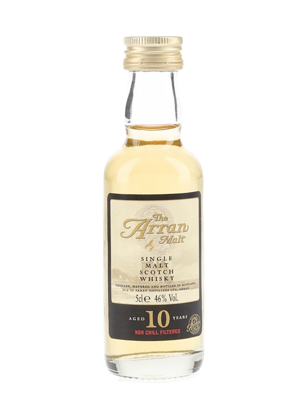 An old presentation miniature bottle of Arran 10 Year Old Single Malt Scotch Whisky.