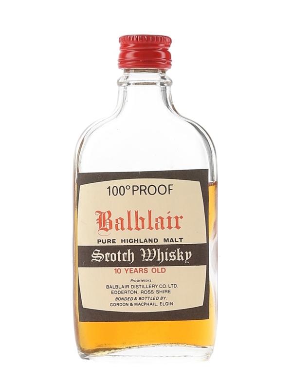 A bottle of Balblair 10 Year Old 100° Proof Pure Highland Malt Scotch Whisky, bottled by Gordon & MacPhail. We estimate this was bottled in the 1970s.