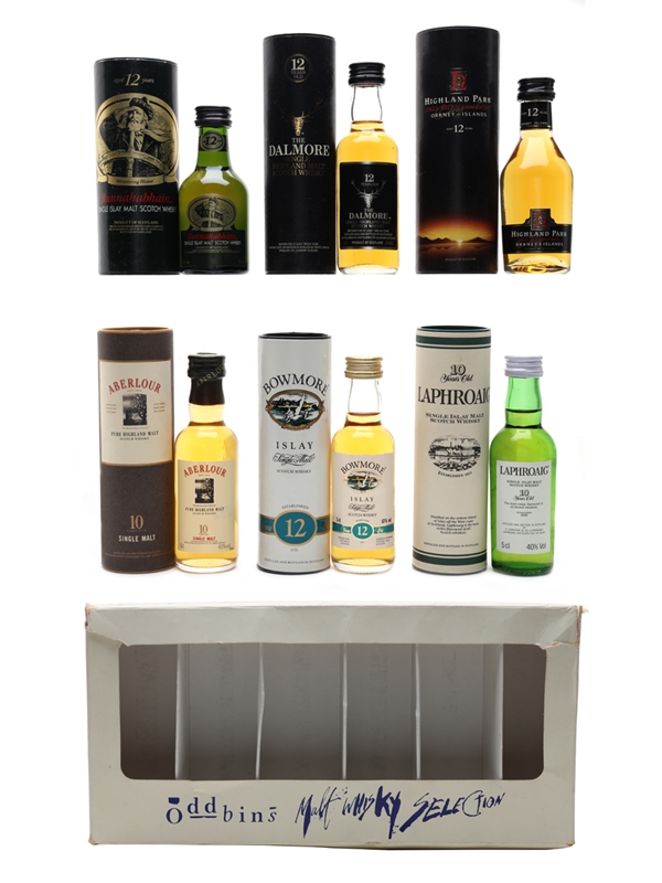 Oddbins Malt Whisky Selection Set Bottled 1990s - Aberlour, Bowmore, Bunnahabhain, Dalmore, Highland Park & Laphroaig 30cl
