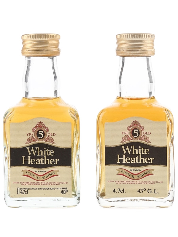 This lot contains two miniature bottles of White Heather 5 Year Old Blended Scotch Whisky. We estimate these were bottled in the 1980s.