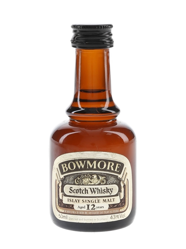A miniature bottle of Bowmore 12 Year Old Islay Single Malt Scotch Whisky. We estimate this was bottled in the 1980s.