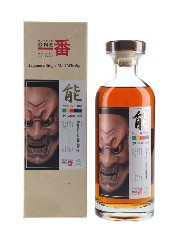 A bottle of Karuizawa 29 Year Old Japanese Single Malt Whisky. This was distilled in 1982, matured in a single bourbon cask and bottled in 2012 as part of the Noh series.