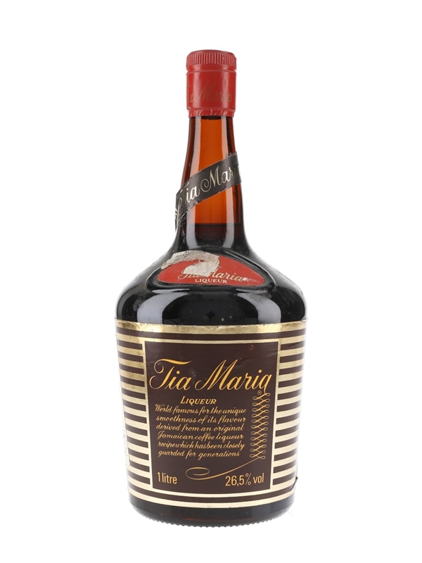 A 100cl bottle of Tia Maria, a Jamaican coffee liqueur produced by Estate Industries Ltd., Kingston, on behalf of United Rum Merchants Ltd., London. This was bottled for the duty free market, we estimate in the 1980s to 1990s.