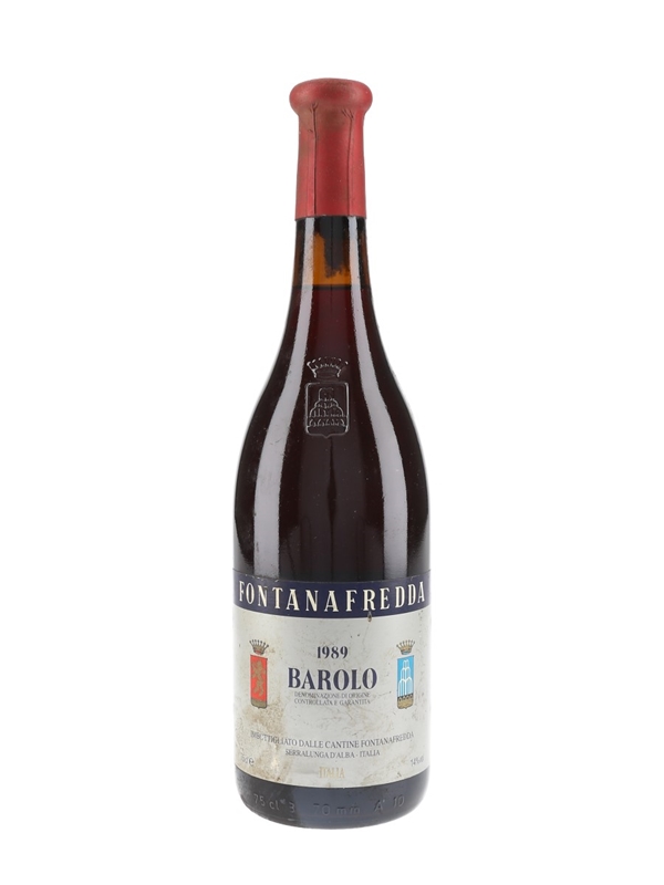 A bottle of 1989 Fontanafredda Barolo, bottled by Cantine Fontanafredda.