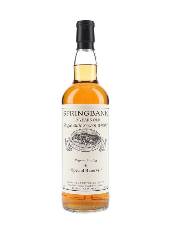 A private cask bottling of Springbank 15 Year Old Single Malt Scotch Whisky. This was distilled in 1996, matured in a single hogshead and bottled at 46% ABV as Special Reserve.