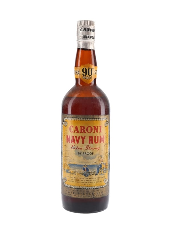 A bottle of Caroni 90 Proof Extra Strong Navy Rum. We estimate this was bottled in the 1960s.