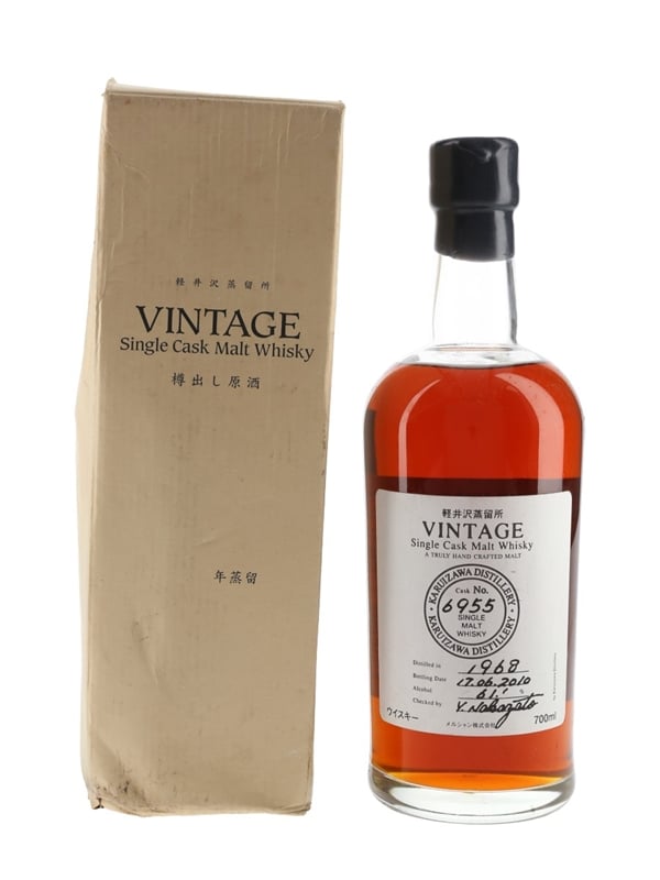 A bottle of Karuizawa 1968 Single Malt Japanese Whisky. This was distilled in 1968 and bottled on 17 June 2010. This was imported to France by la Maison du Whisky.