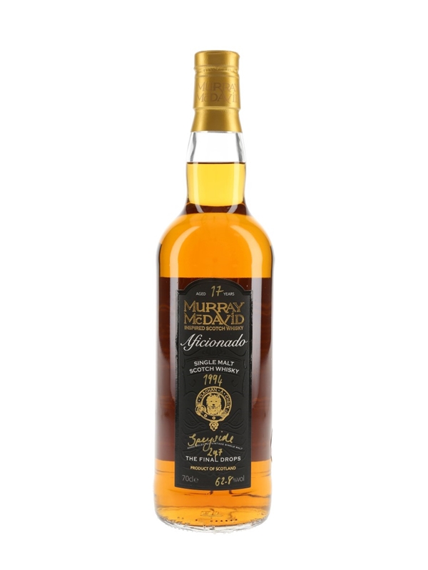 A bottle of Speyside 17 Year Old Single Malt Scotch Whisky. This was distilled in 1994 and bottled at cask strength as part of Murray McDavid's Aficionado series.