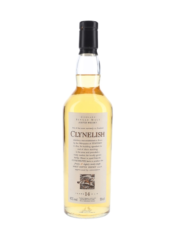 A bottle of Clynelish 14 Year Old Highland Single Malt Scotch Whisky from Diageo's Flora & Fauna series. This proved to be very popular and led to Diageo producing a 14 year old Clynelish as the distillery's standard bottling.