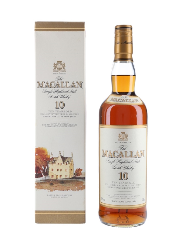 An old presentation bottle of The Macallan 10 Year Old Single Highland Malt Scotch Whisky. We estimate this was bottled in the early 2000s.