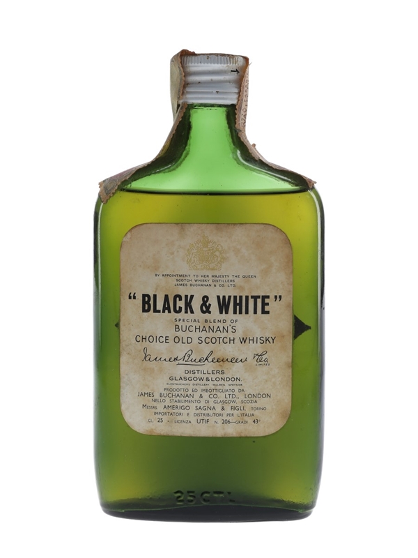 A 25cl bottle of Buchanan's Black & White blended Scotch whisky. This was bottled for the Italian market and imported by Amerigo Sagna, we estimate in the 1960s.
