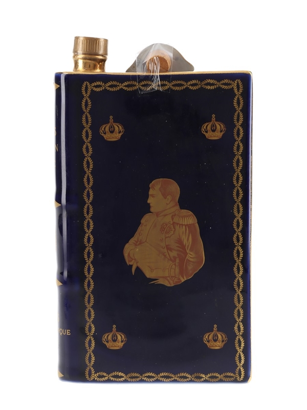 A ceramic, book-shaped decanter of Camus Napoléon Cognac, created to celebrate the 200th anniversary of Napoléon's birth. This decanter is decorated with 22 carat gold and comes with a hat-shaped stopper.