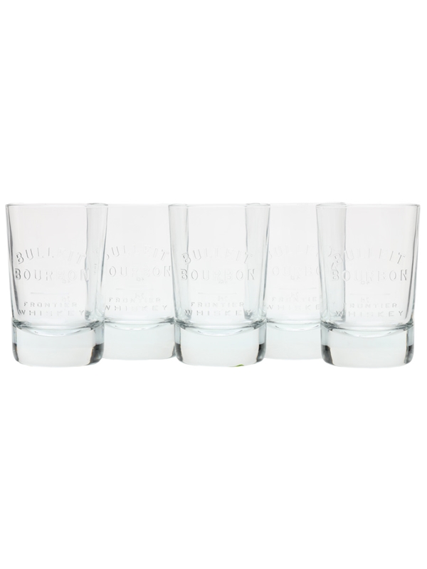 This lot contains five Bulleit Bourbon Frontier Whiskey glasses.