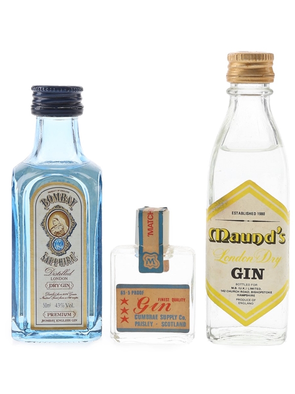 Bombay Sapphire, Cumrae Supply & Maund's Gin 3 x 1cl-5cl