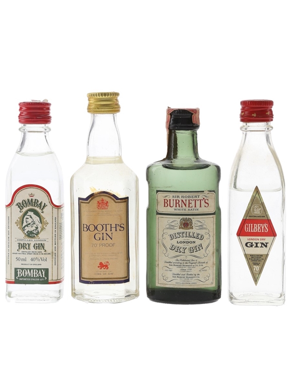 Bombay, Booth's, Burnett's & Gilbey's Gin Bottled 1970s-1980s 4 x 4.7cl-5cl / 40%