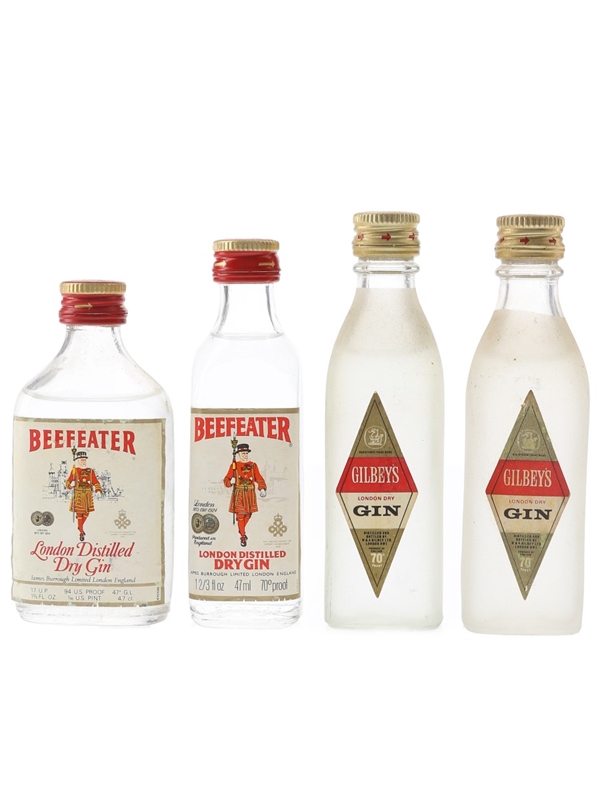 Beefeater & Glibey's London Dry Gin Bottled 1960s & 1970s 4 x 4.7cl-5cl
