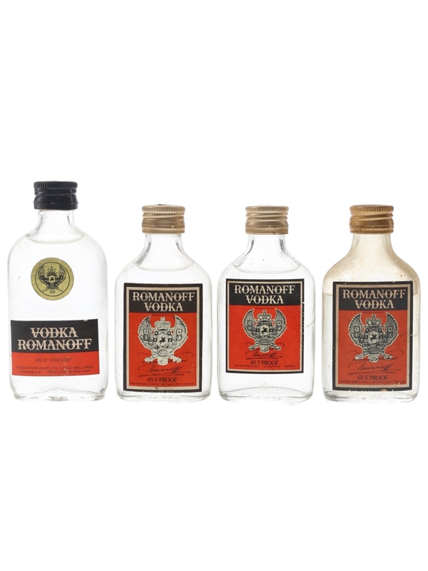 Romanoff Vodka Bottled 1960s & 1970s 4 x 4cl-5cl / 37.5%