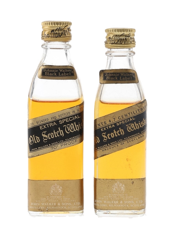 This lot contains two miniature bottles of Johnnie Walker Black Label Extra Special Old Scotch Whisky. We estimate these were bottled in the 1970s.