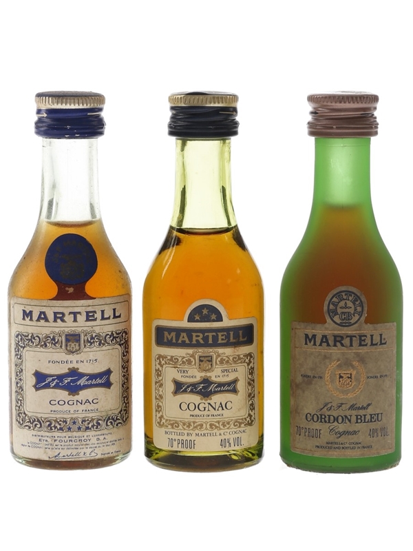 Martell 3 Star & Cordon Bleu Bottled 1970s 3 x 3cl / 40%