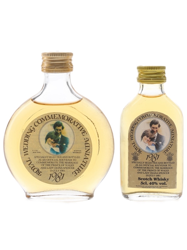 This lot contains two commemorative miniature bottles of Blended Scotch Whisky bottled to celebrate the marriage of The Prince of Wales and Lady Diana Spencer in 1981. The labels feature an image of the happy couple.