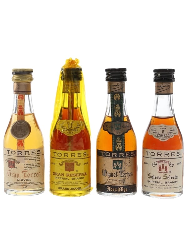 This lot contains four miniature bottles of Torres Brandy produced in Spain: