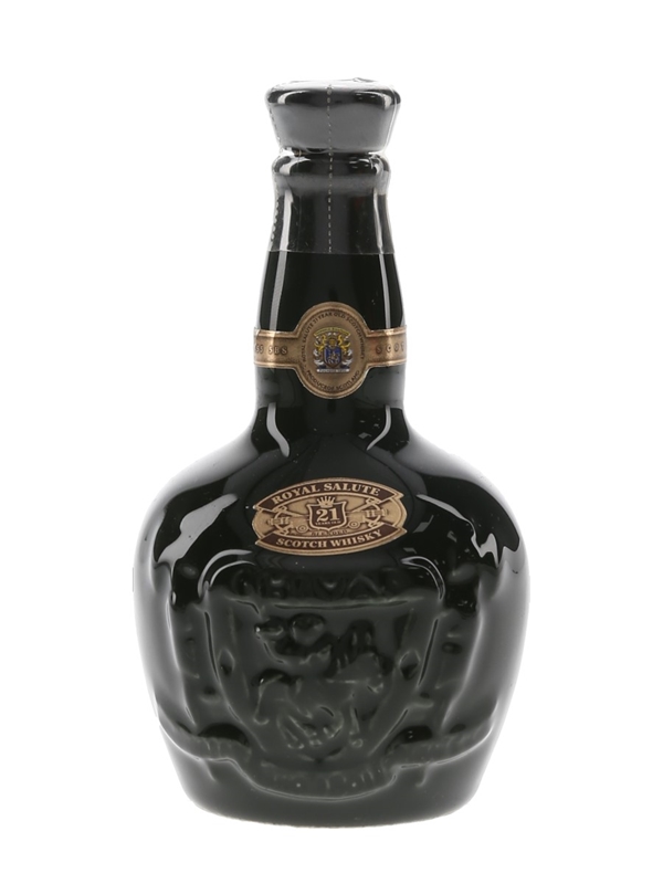 A miniature bottle of Chivas Brothers' Royal Salute 21 Year Old blended Scotch whisky presented in a ceramic decanter. This was bottled for the Korean market.