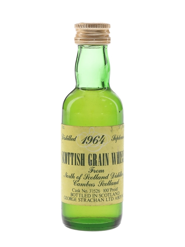 A bottle of North Of Scotland 1964 single grain Scotch whisky, bottled by George Strachan Ltd at 57.1% ABV.