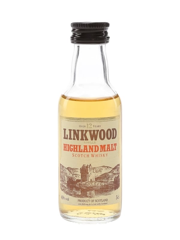 A miniature bottle of Linkwood 12 Year Old Single Malt Scotch Whisky. We estimate this was bottled in the 1980s.