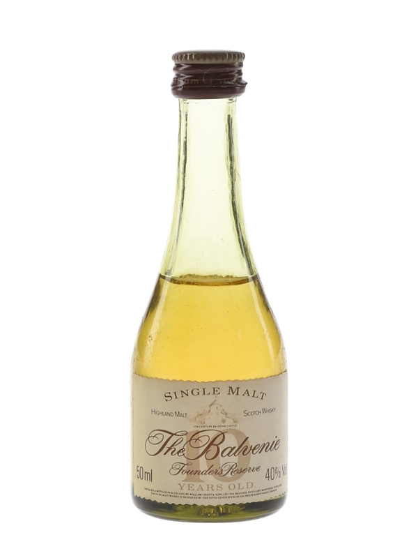 A miniature bottle of The Balvenie 10 Year Old Founder's Reserve Single Highland Malt Scotch Whisky. We estimate this was bottled in the 1980s.