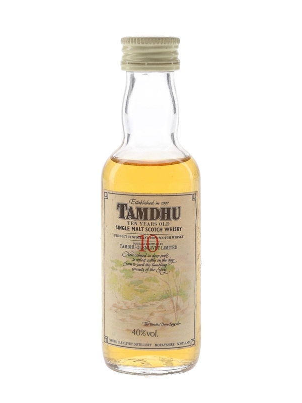 A miniature bottle of Tamdhu 10 Year Old Single Malt Scotch Whisky. We estimate this was bottled in the 1980s.